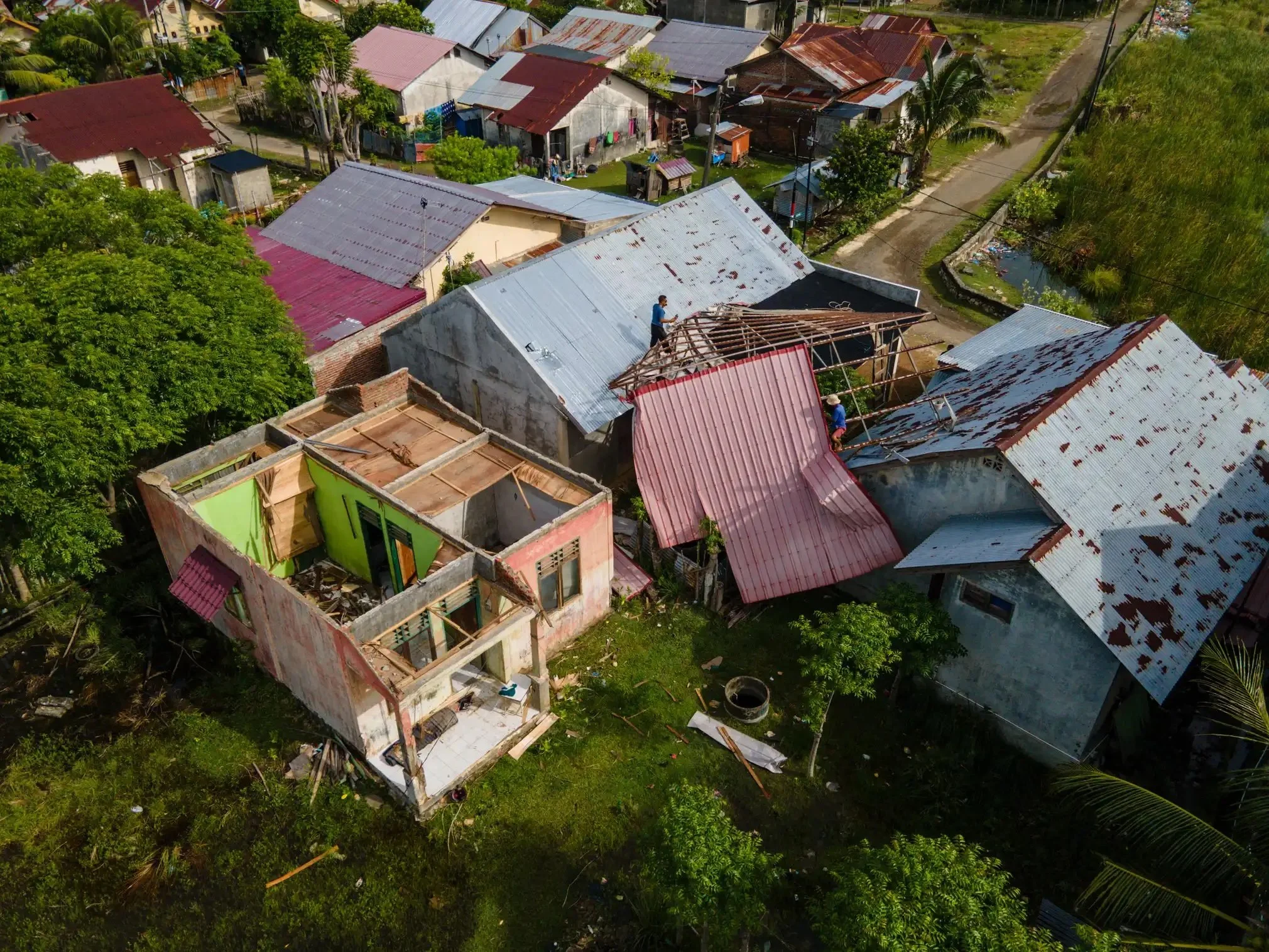 Residents look at the damaged caused to their houses following a monsoon. July 21, 2025 Photograph: Chaideer Mahyuddin/AFP/Getty Images