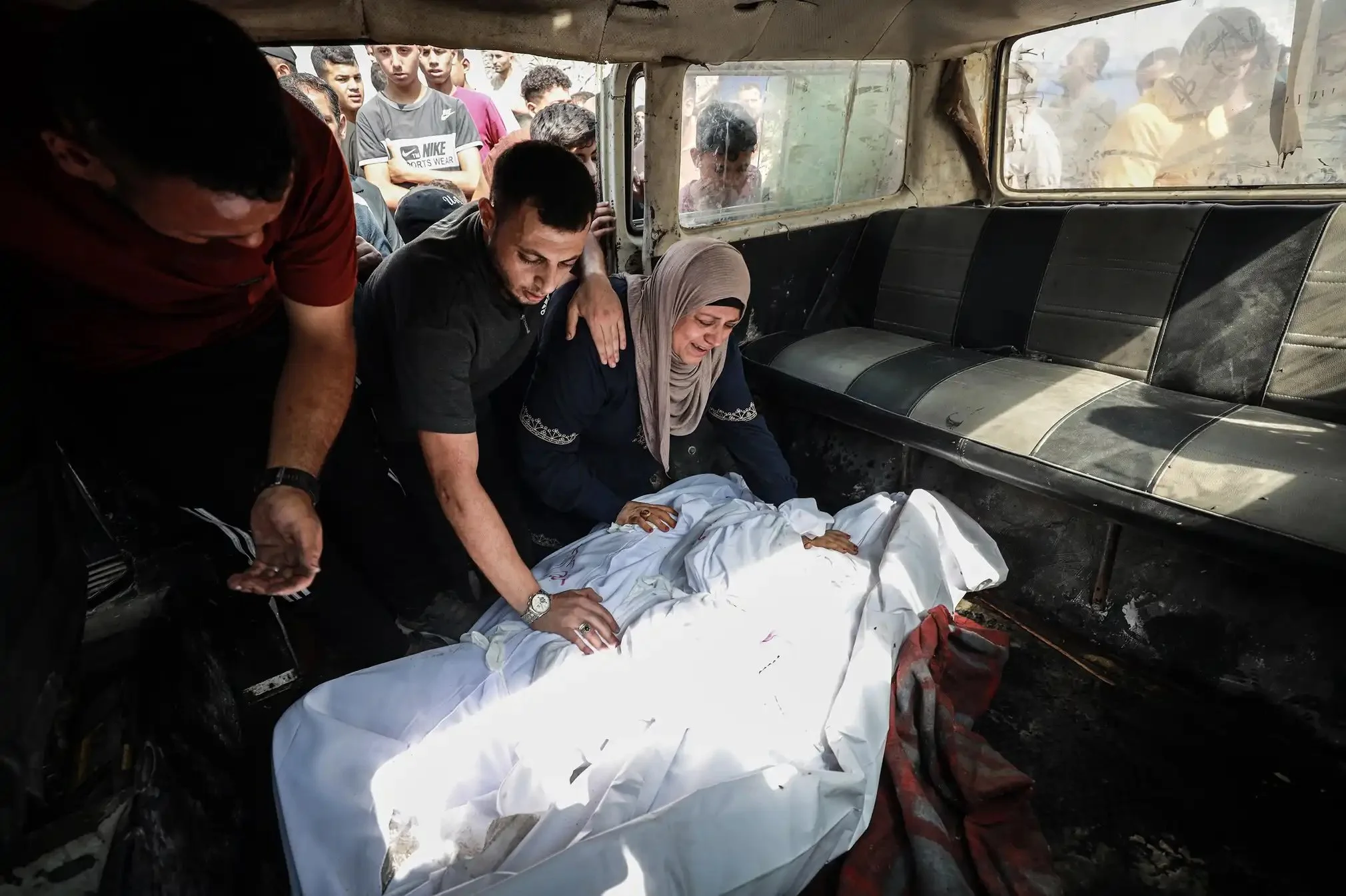 A group of people carry bodies away following an Israeli attack in Gaza. July 11, 2025 Photograph: Anatoly/Getty Images