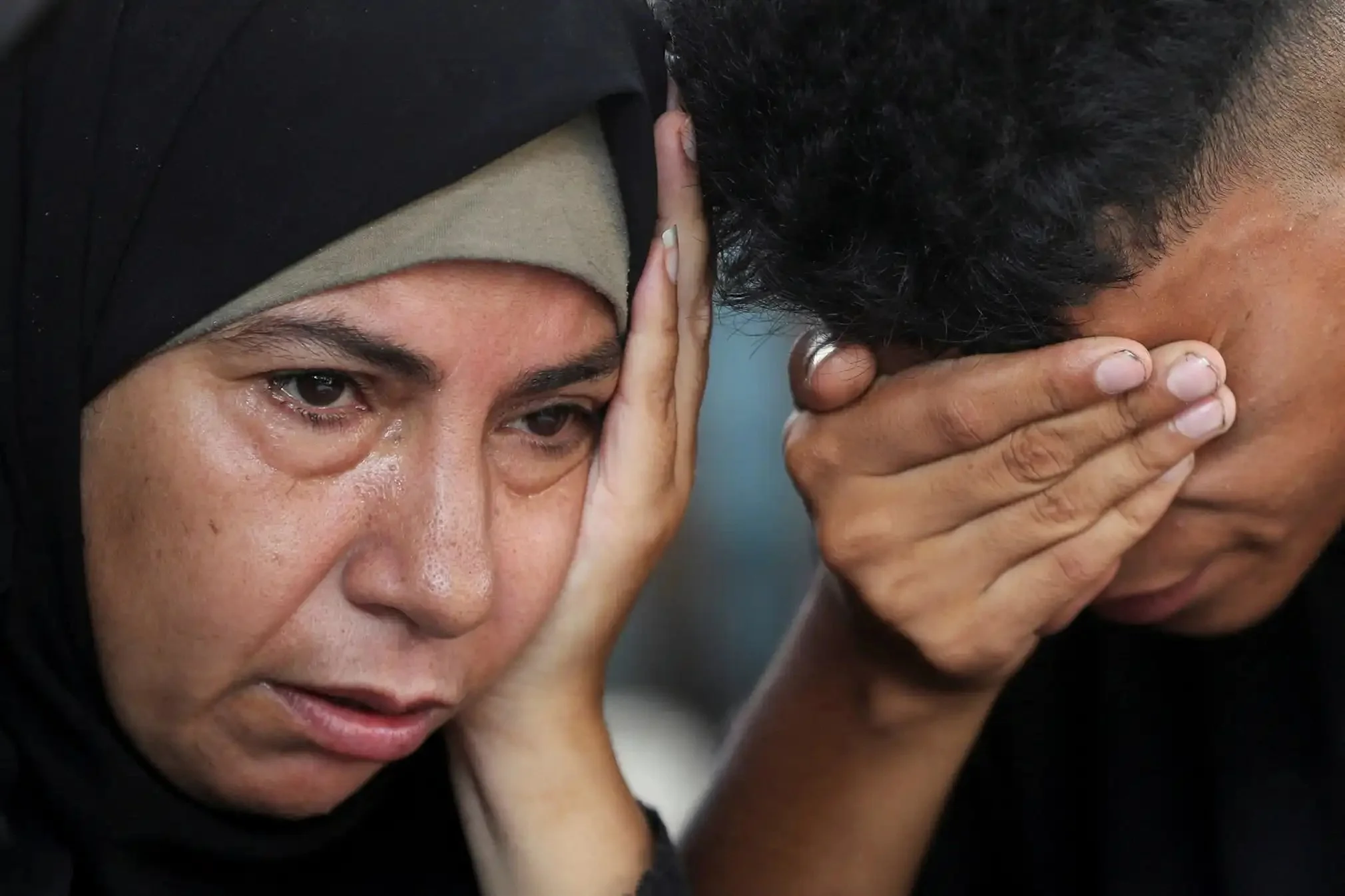 People in Gaza are seen mourning after an Israeli Strike resulted in the deaths of a few Palestinians. August 22, 2025 Photograph: Basahr Taleb/AFP/Getty Images