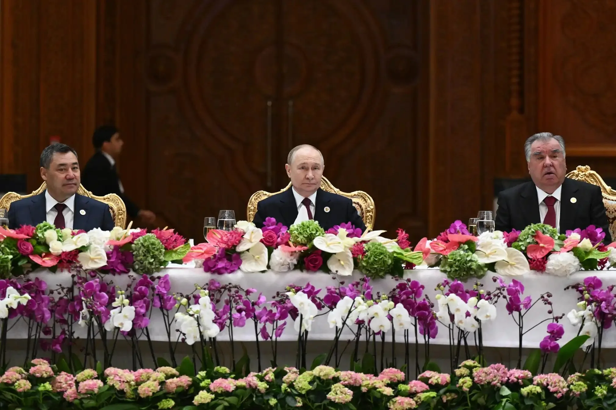President Putin is pictured meeting with the presidents of Tajikistan and Kyrgyzstan. October 10, 2025 Photograph: Kristina Kormilitsyna/AP