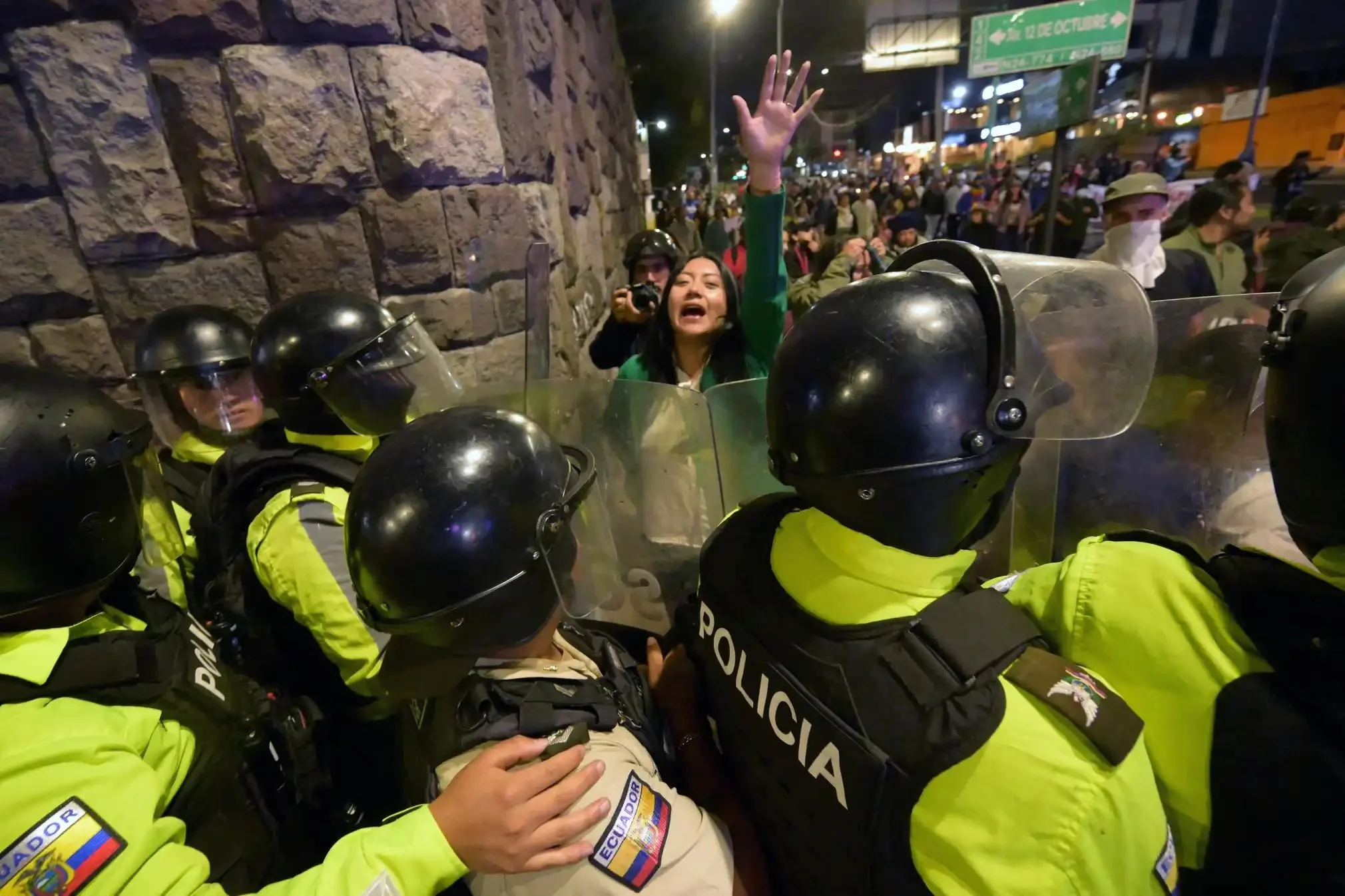 Protesters are seen confronting police in Ecuador. October 8, 2025 Photograph: Rodrigo Buendía/AFP/Getty Images