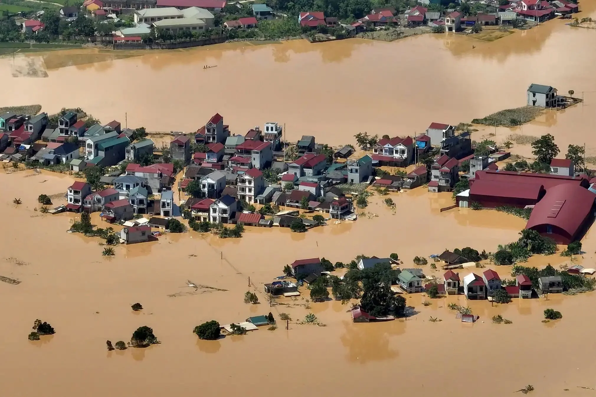 Houses in Vietnam are pictured flooded following a typhoon. October 8, 2025 Photograph: Anh Tuc/AFP/Getty Images