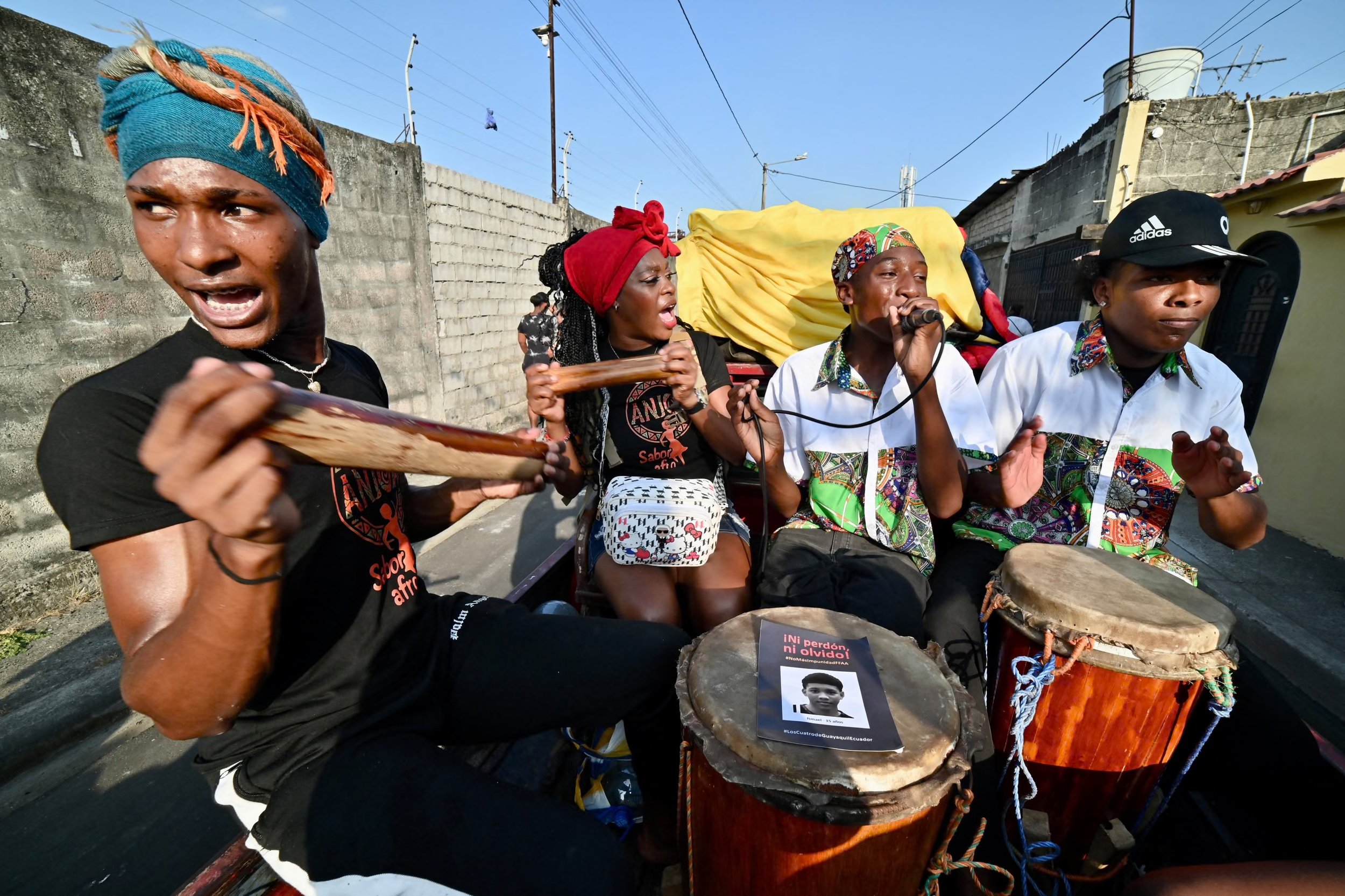 A group of people in Ecuador demand justice, a year later, after a group of minors were detained by the military and later found dead. December 9, 2025 Photograph: Marcos Pin/AFP/Getty Images