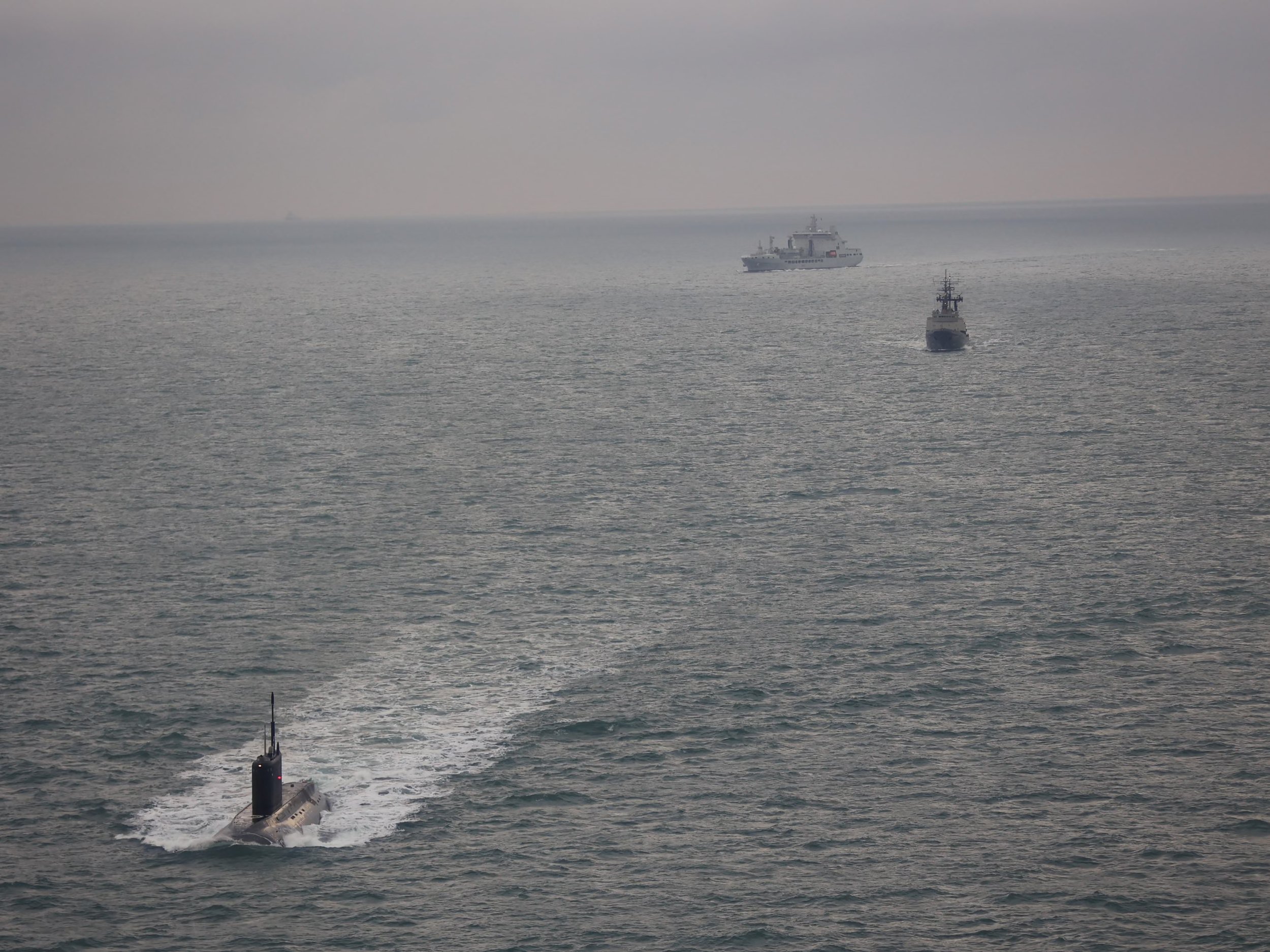 A Russian Submarine is followed by the UK Navy. December 11, 2025 Photograph: MoD Crown Copyright/PA