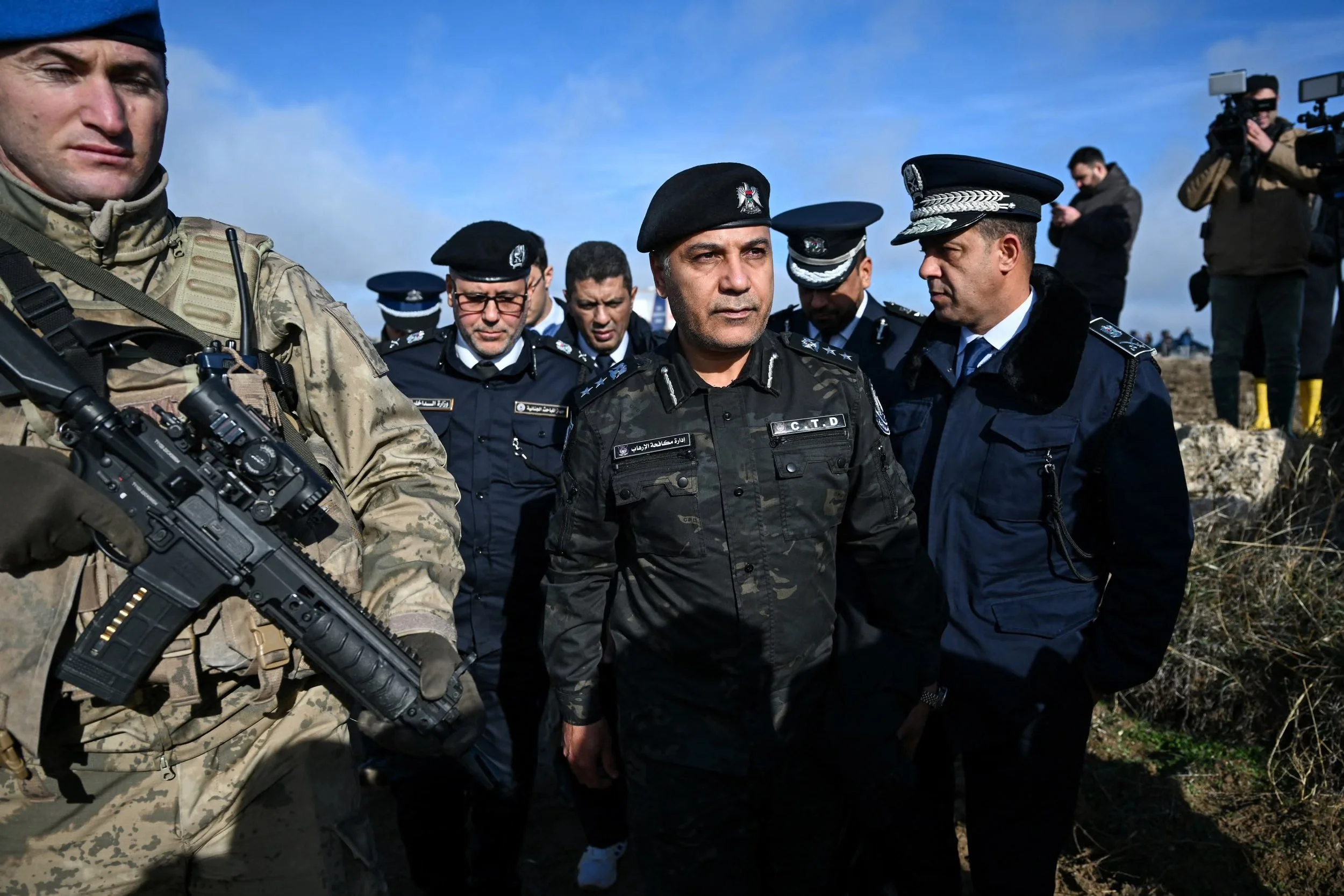 Libyan officials arrive at the sight were a jet crashed that was carrying their chief of staff. December 24, 2025 Photograph: Reuters