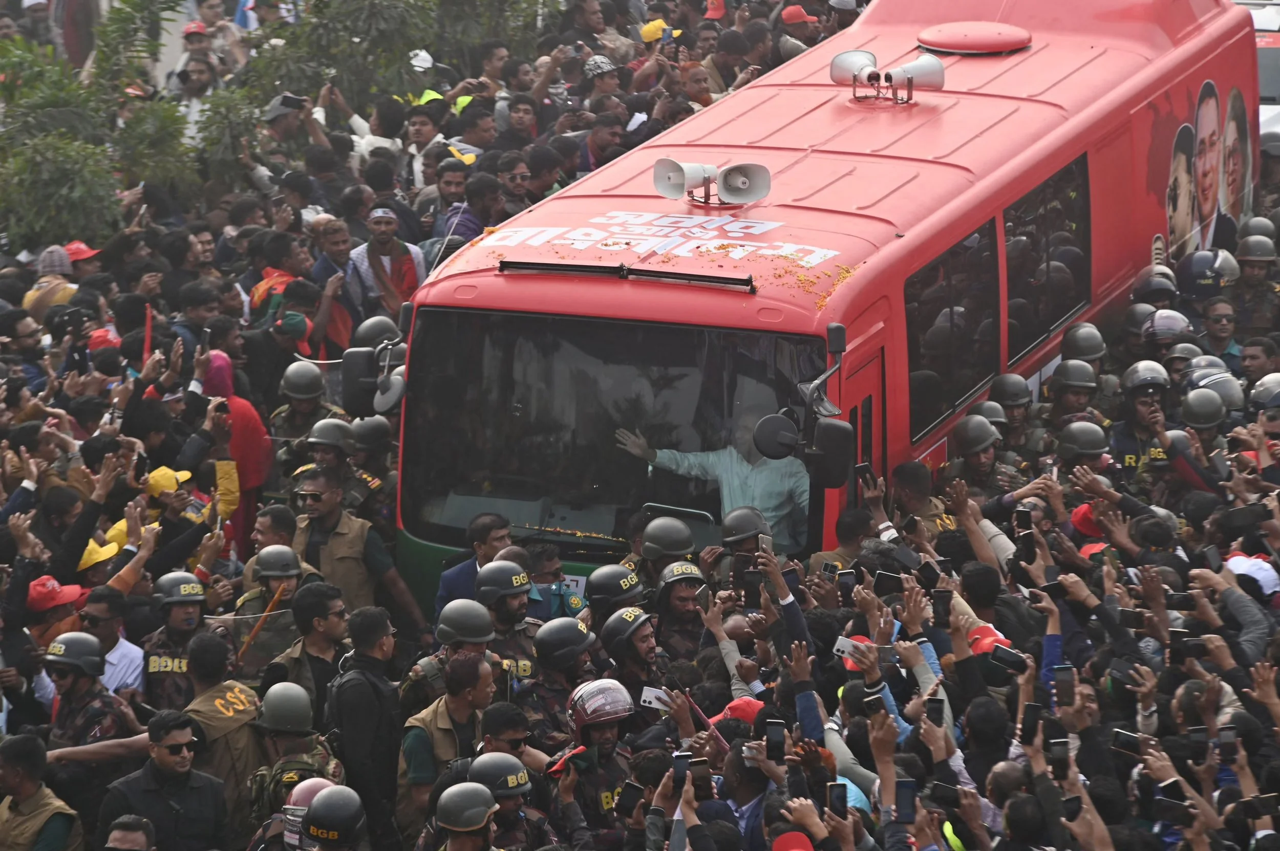 The son of the former Prime Minister of Bangladesh arrives back in the country following years of self-imposed exile in the U.K.. December 26, 2025 Photograph: Habibur Rahman/ABACA/Shutterstock