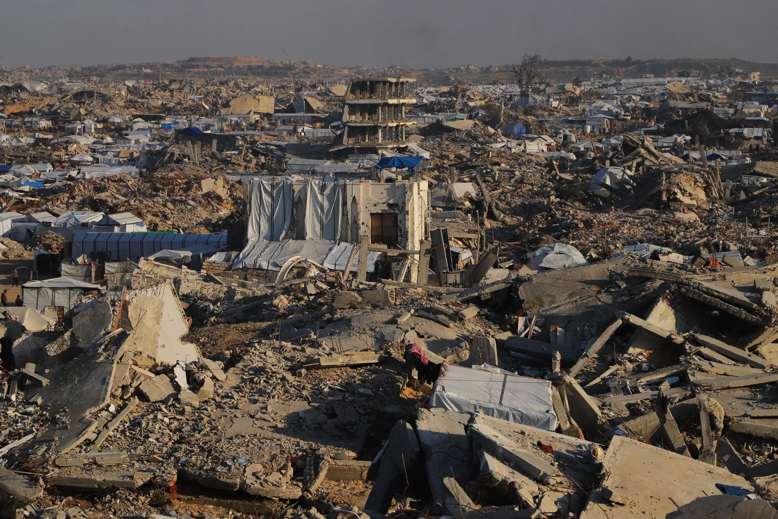 The displaced tents of Palestinians are seen among the ruins of Gaza. December 26, 2025 Photograph: Anadolu/Getty Images