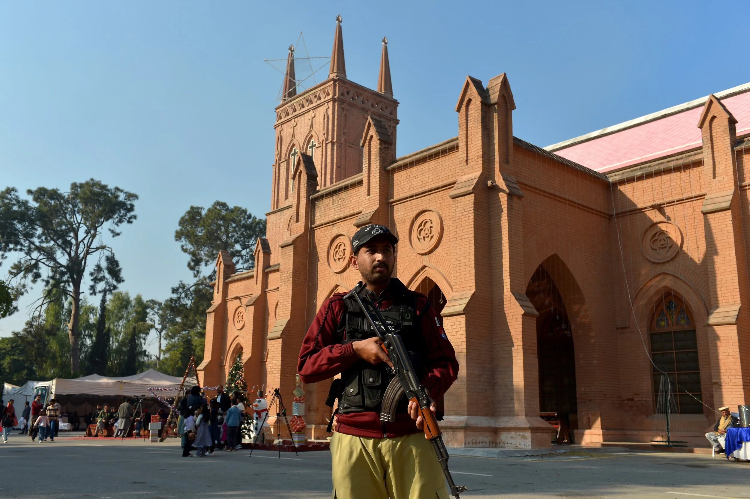 Police stand guard outside of a cathedral in Pakistan on Christmas Day. December 25, 2025 Photograph: Bilawal Arbab/EPA