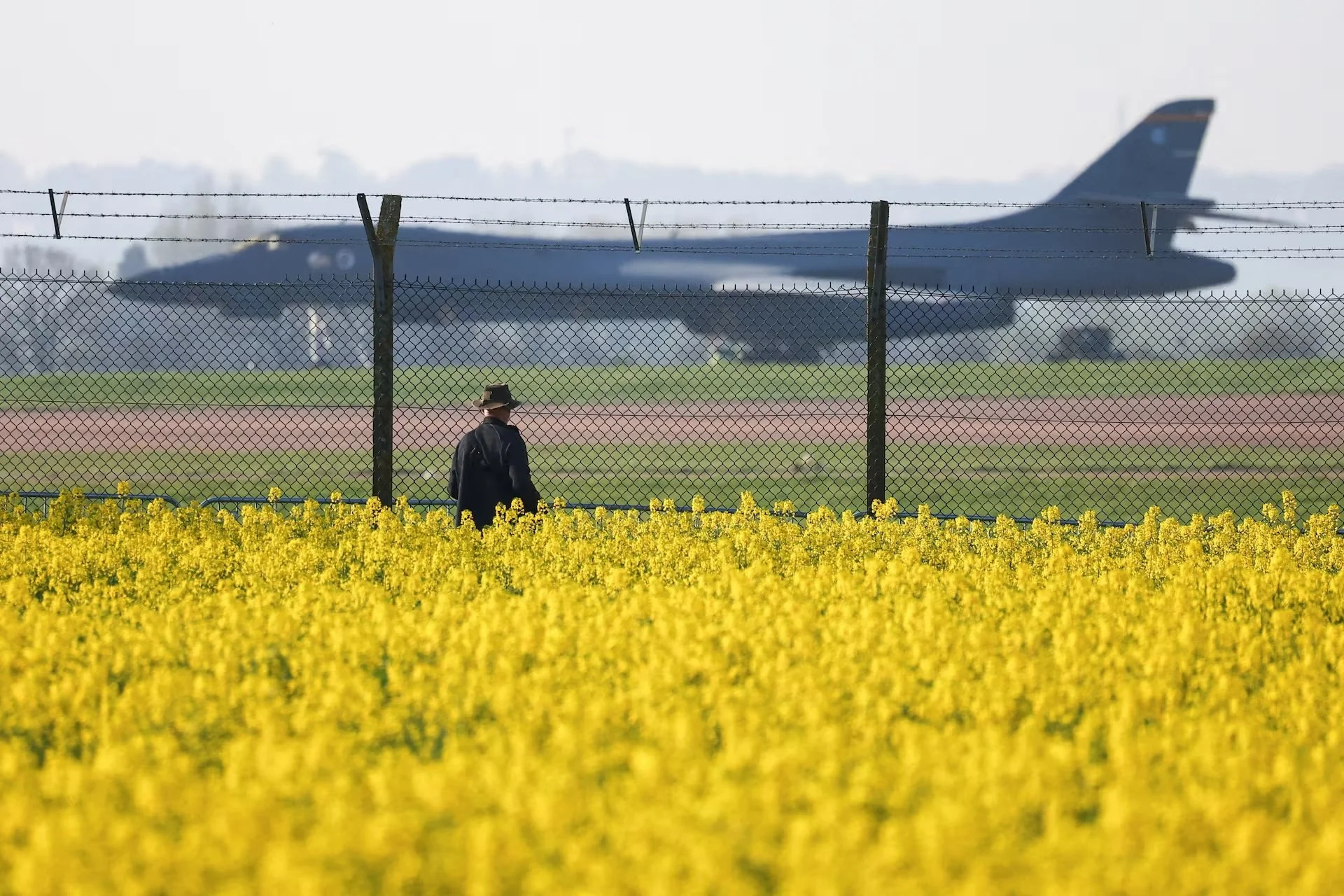 A U.S. Air Force aircraft is seen in the UK. April 8, 2025 Photograph: REUTERS/Toby Melville
