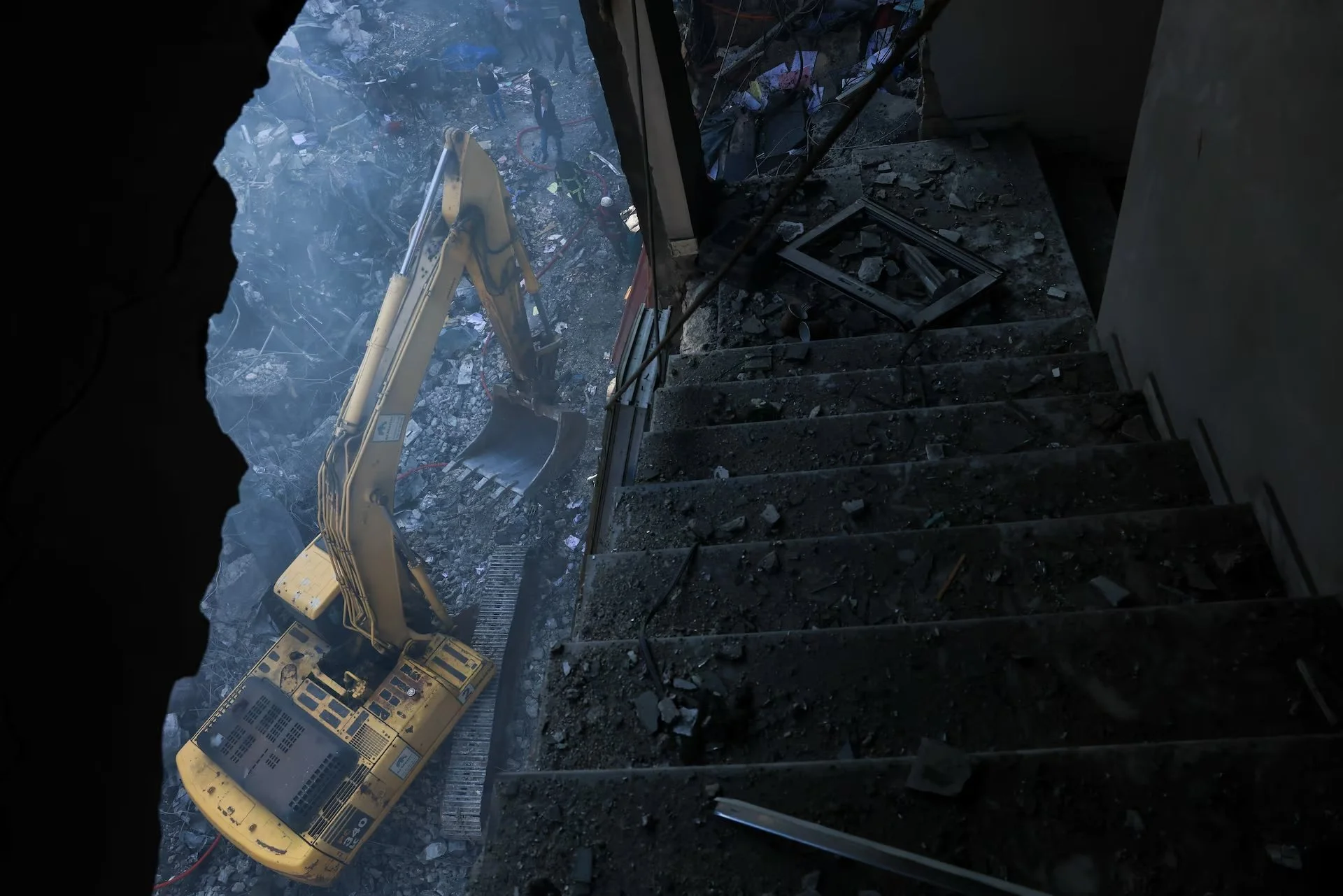 An excavator is seen at work at the site of an Israeli strike in Lebanon. April 9, 2026 Photograph: REUTERS/Raghed Waked