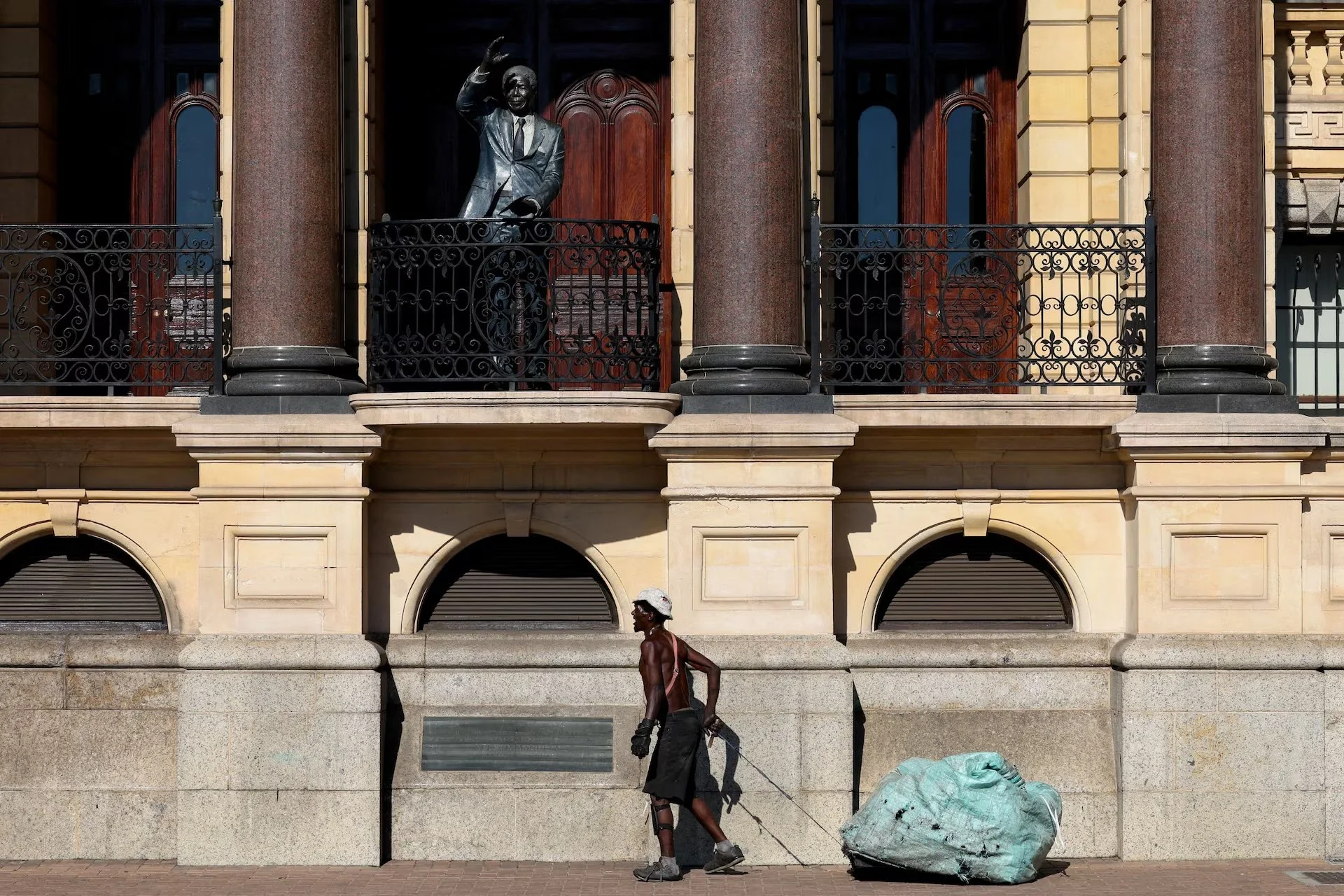 A man is seen walking past a statue of Nelson Mandela in South Africa. April 9, 2026 Photograph: REUTERS/Esa Alexander